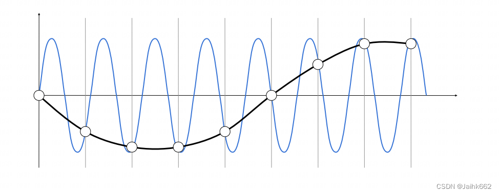 蓝色为实际的图像,而黑色是采样后线性过滤后,真正展现给我们看的图像,可以看到其出现了严重的失真(摩尔纹的产生原理),换句话说:越是高频的信息,我们越需要更高频的进行采样