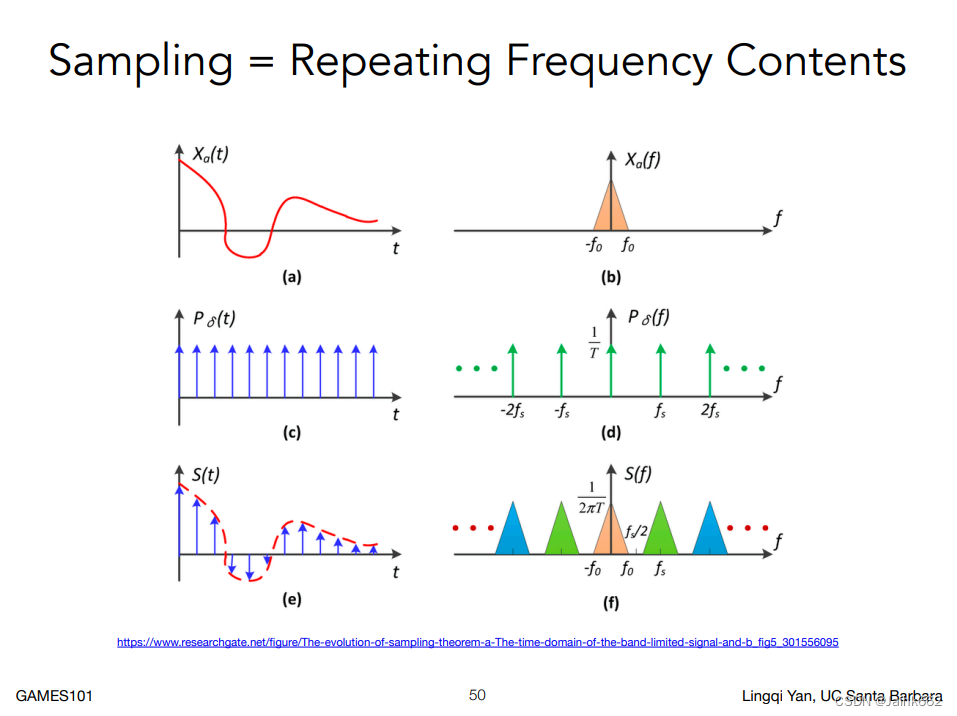 课件里还提到过一个问题:为什么我们的抗锯齿要先模糊再采样,而非先采样再模糊?