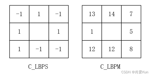 的均值来表示,与LBP旋转不变模式算法一样,同样可以实现旋转不变性。文中的符号分量CLBP_S实际上就是传统LBP,两者编码方式也是相同的(这里的-1相当于传统LBP中的0)。