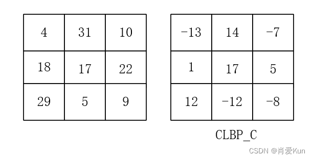 其中,中心像素通过全局阈值形成二值编码,称为CLBP_C,