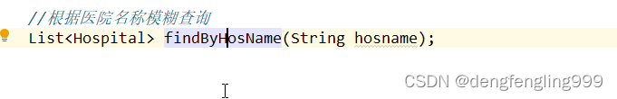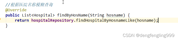 public interface HospitalRepository extends MongoRepository {//根据hostcode查询对象是否存在 这个方法不用我们自己实现MongoRepository会帮助我们实现Hospital getHospitalByHoscode(String hostcode);//根据医院名称模糊查询List findHospitalByHosnameLike(String hosname);