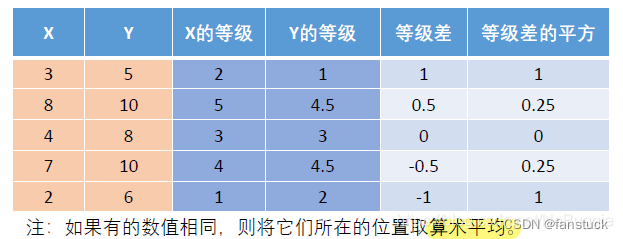 其中,d_iX_{i}Y_{i}之间的等级差。