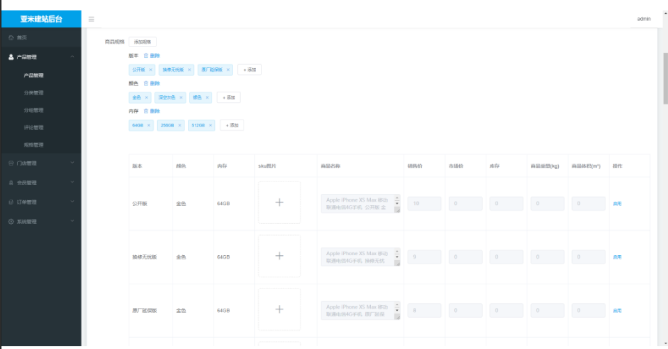 项目致力于为中小企业打造一个完整、易于维护的开源的电商系统,采用现阶段流行技术实现。后台管理系统包含商品管理、订单管理、运费模板、规格管理、会员管理、运营管理、内容管理、统计报表、权限管理、设置等模块。
