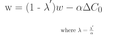 将λ'替换为λ,对L2正则化方程进行重新参数化,将其等价于权值衰减方程,如下式所示。