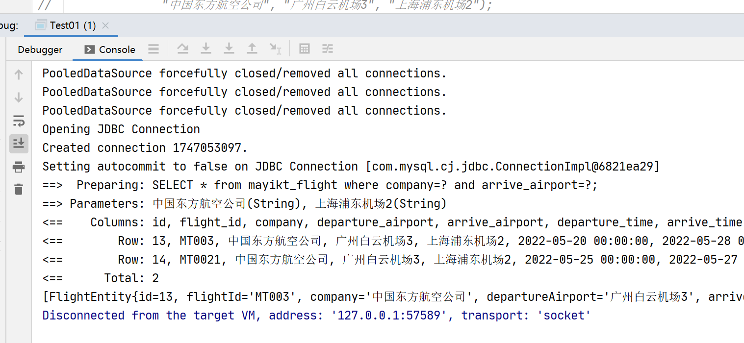 List getByIdFlightParameterMap(Map parameterMap);List getByIdFlightParameter(@Param("company") String company,@Param("departureAirport") String departureAirport,@Param("arriveAirport") String arriveAirport);List getByIdFlightPoJo(FlightEntity flightEntity);