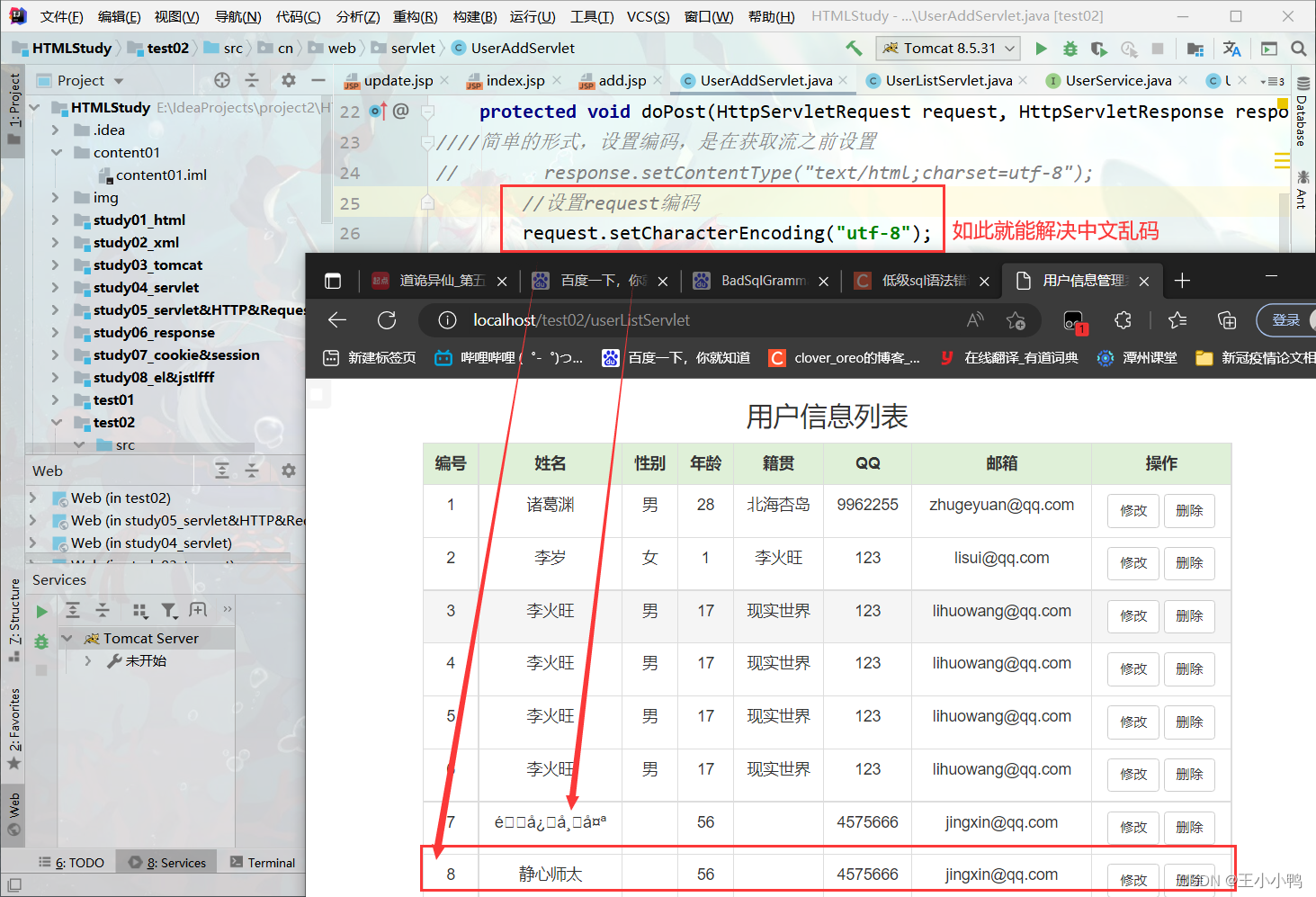 试着打印UserListServlet,