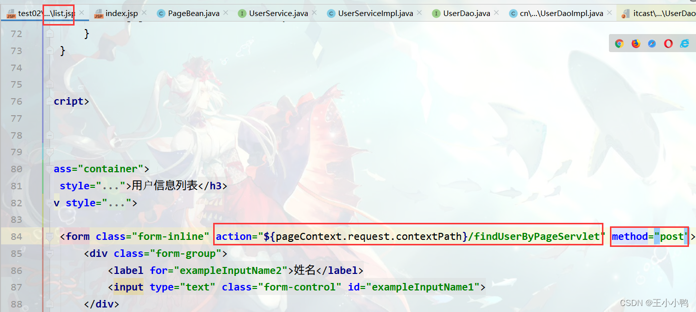 在/test02/userListServlet下可以输出,但是list.jsp下没有打印出来
