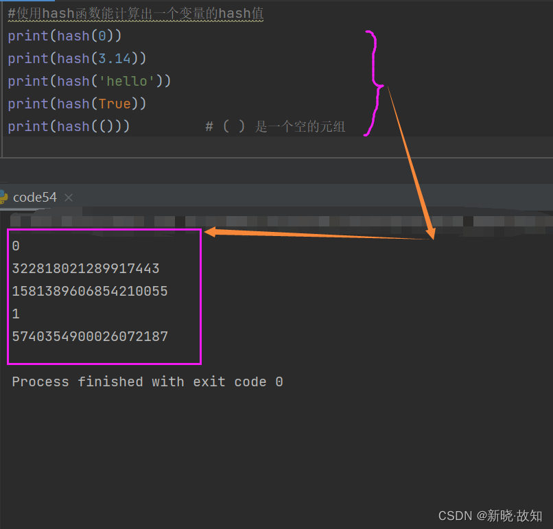 print(hash(0)) print(hash(3.14)) print(hash('hello')) print(hash(True)) print(hash(())) # ( ) 是一个空的元组![]()
