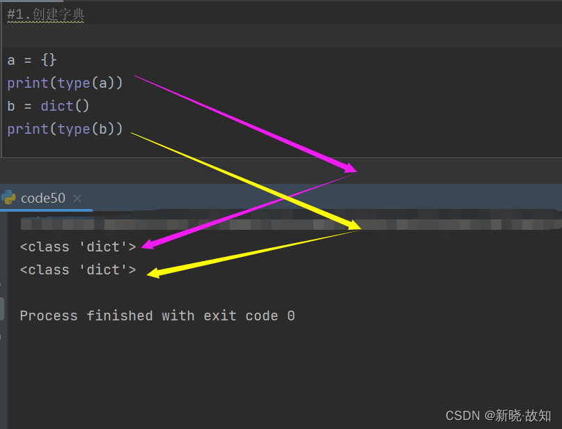 (1)创建一个空的字典. 使用 { } 表示字典#1.创建字典a = {} print(type(a)) b = dict() print(type(b))(2)在创建的同时指定初始值 (3)键值对之间使用 ‘, ’分割, 键和值之间使用 : 分割. (冒号后面推荐加一个空格). (4)使用 print 来打印字典内容