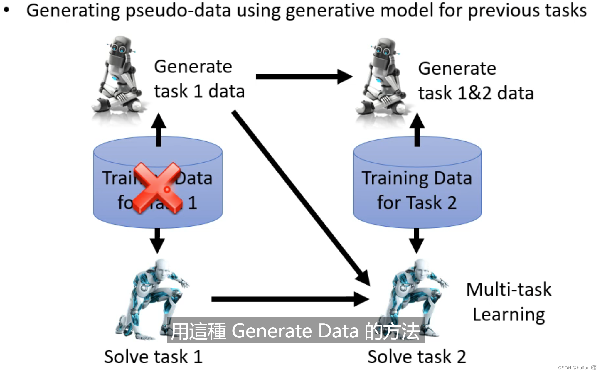 生成先前任务的学习资料来用于现在任务的训练。