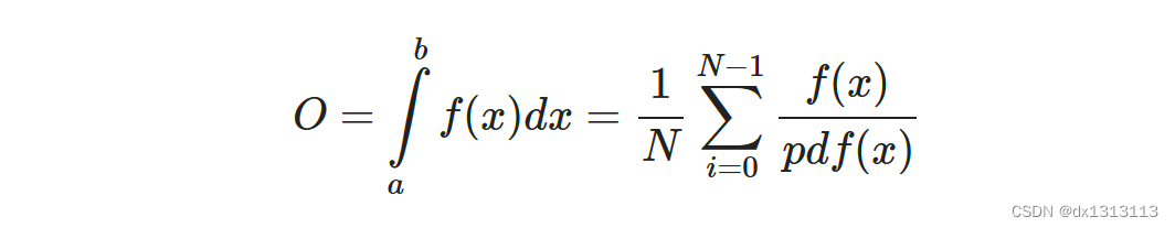 为了求解这个积分,我们在 a到 b上采样 N 个随机样本,将它们加在一起并除以样本总数来取平均。其中