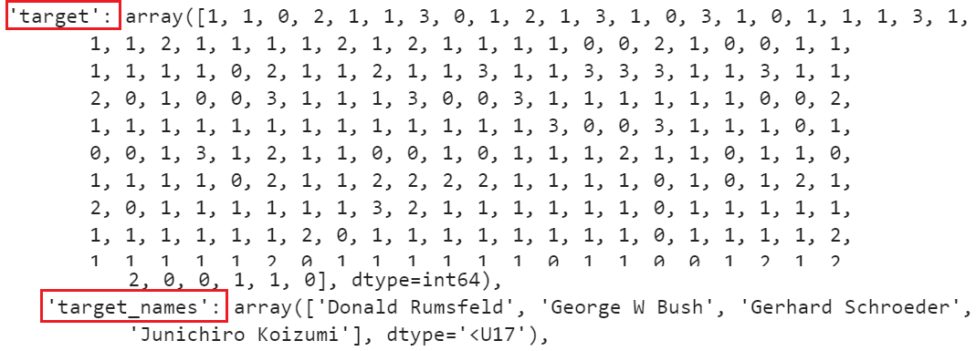 faces = fetch_lfw_people(data_home = 'D:\Anaconda\Lib\site-packages\sklearn\datasets\data\lfw-funneled',min_faces_per_person=60) #实例化 min_faces_per_person=60:每个人取出60张脸图