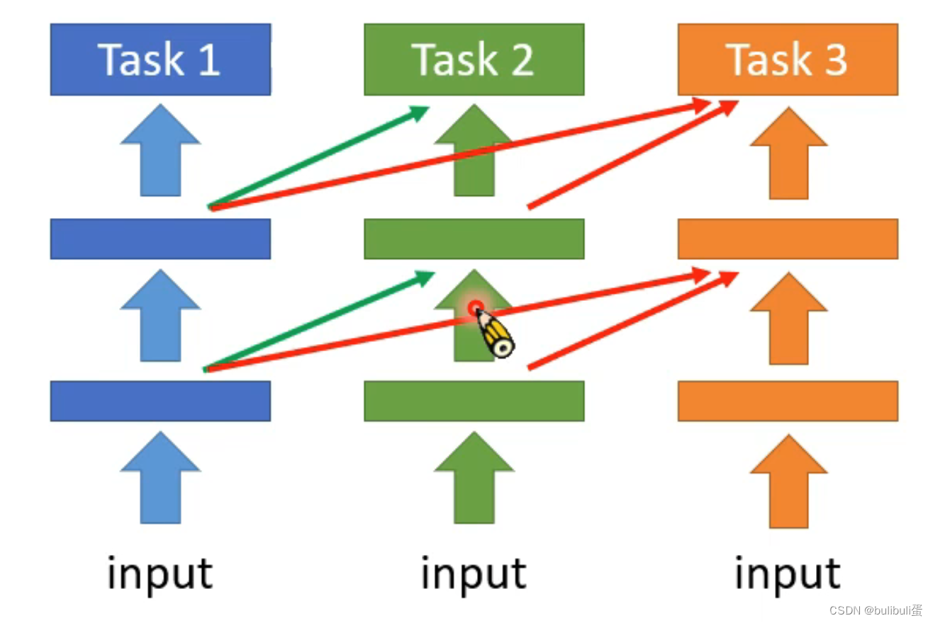 只训练当前模型的参数,只是将前面模型的参数作为输入,缺点:占用过多额外空间。