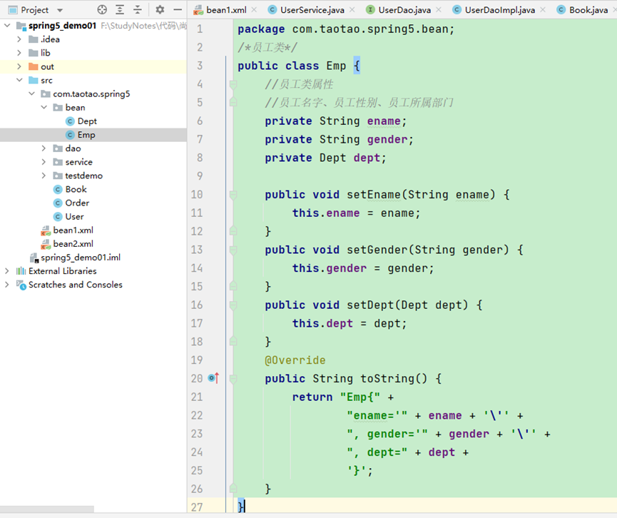注入数组类型属性;注入List集合类型属性;注入Map集合类型属性;注入Set集合类型属性