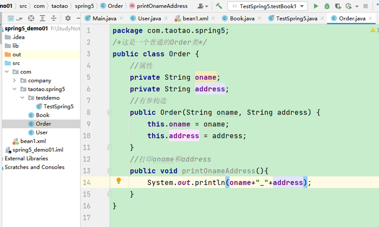 以Book类为例,在Book类中添加一个address属性,然后注入空值