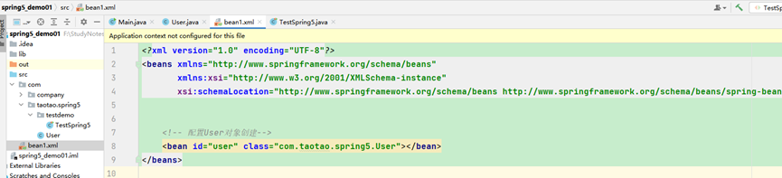 在spring配置文件中使用bean标签,标签里面添加对应的属性