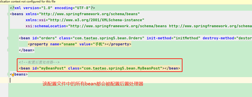 演示bean的生命周期(7步):首先创建类,实现接口BeanPostProcessor,重写接口中的方法,然后在配置文件中配置后置处理器