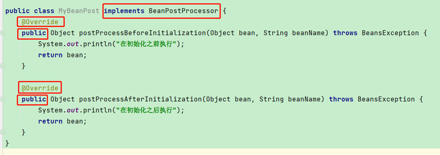 把bean实例传递bean后置处理器的方法postProcessBeforeInitialization