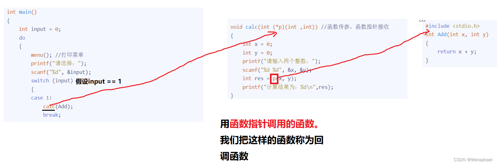 }void calc(int (*p)(int ,int)) //函数传参,函数指针接收