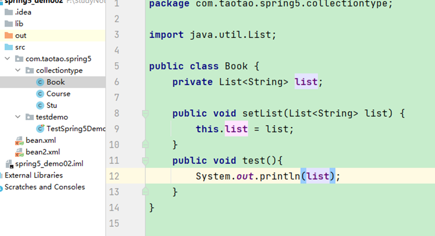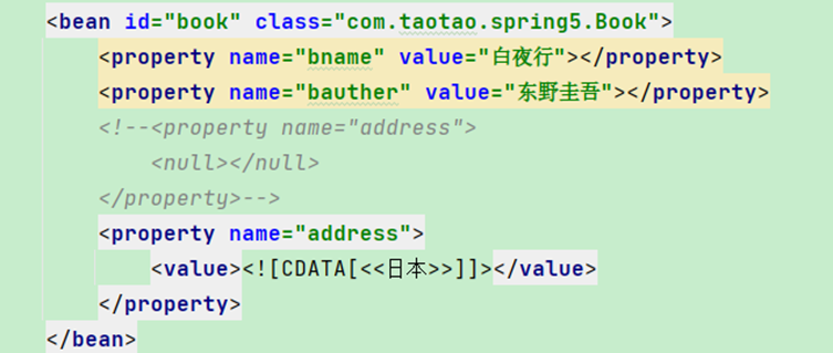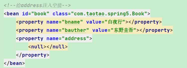 以Book类为例,在Book类中添加一个address属性,然后注入空值