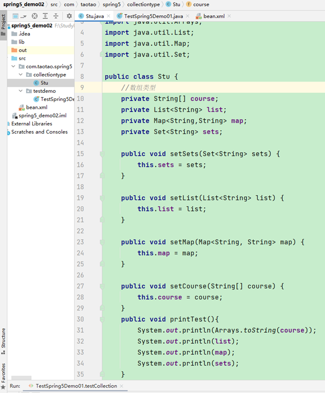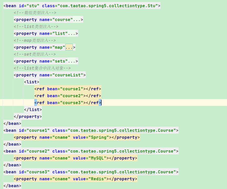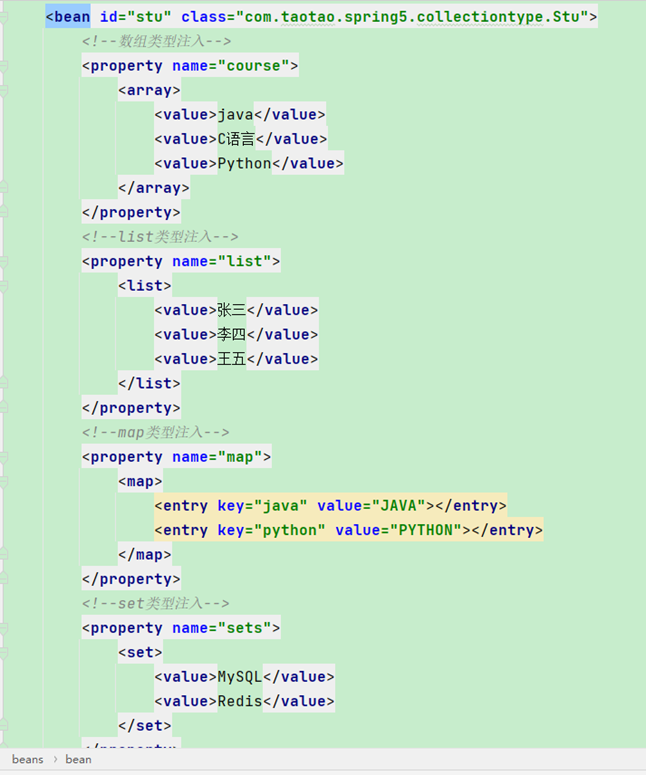 注入数组类型属性;注入List集合类型属性;注入Map集合类型属性;注入Set集合类型属性