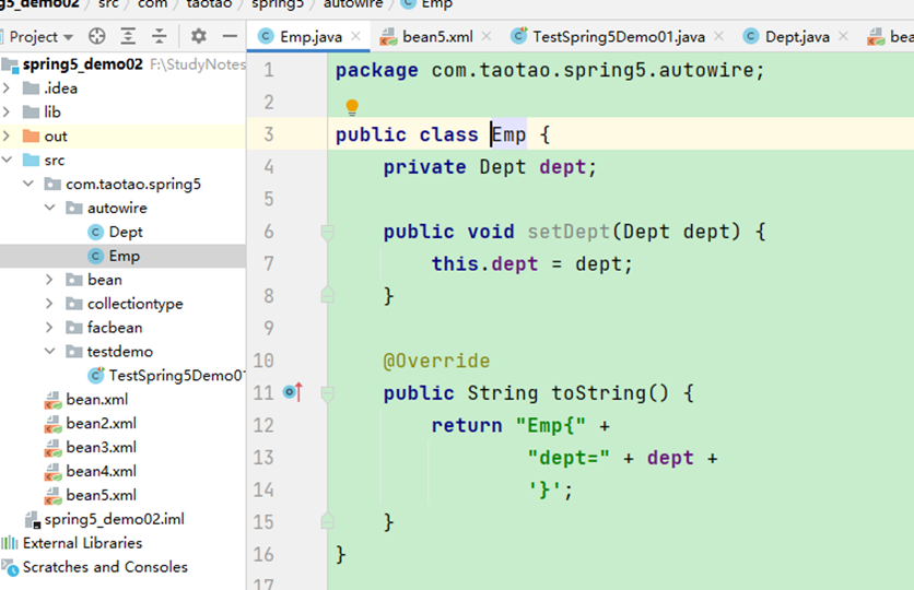 Bean标签属性autowire配置自动装配,autowire属性的两个值: