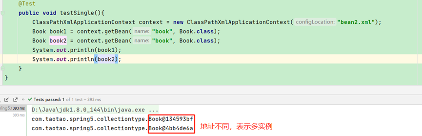 设置多实例:在spring配置文件的bean标签里有属性scope,将该属性设置为prototype即设置为多实例