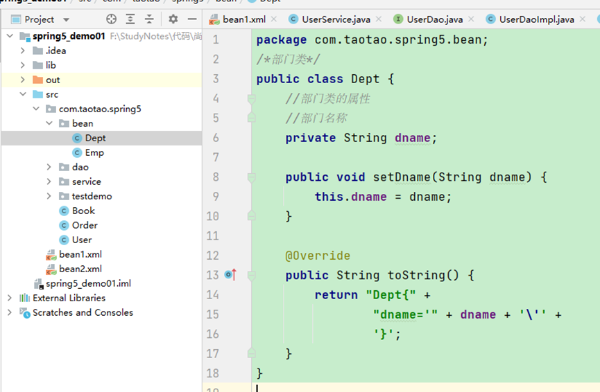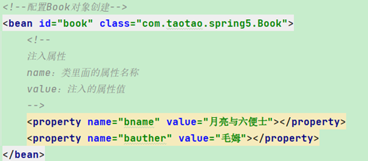 在spring配置文件中使用bean标签,标签里面添加对应的属性