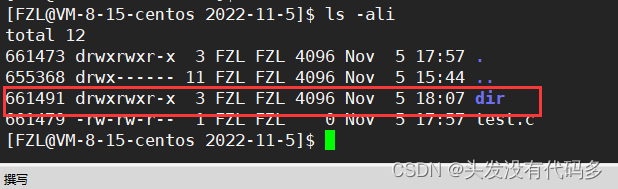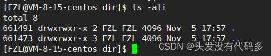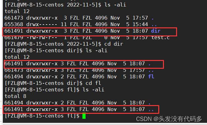 我们发现fl里面的..对应的Inode和dir对应的Inode一样,这是因为fl的..指向上一级路径,也就是dir