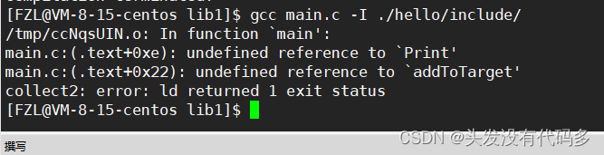 我们已经声明去哪里找头文件和库了,但此时还会报错,这是因为我们无法保证lib路径下只有一个库,我们没有告诉编译器是lib路劲下得哪一个库,用-l(小写L)