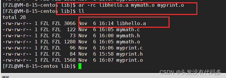 这里有俩个.o文件,我们可以把这俩个.o文件打包,打包的过程就叫形成静态库