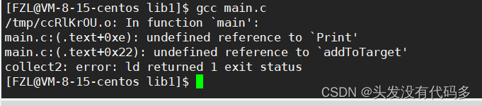 但此时输入gcc main.c系统仍然报错
