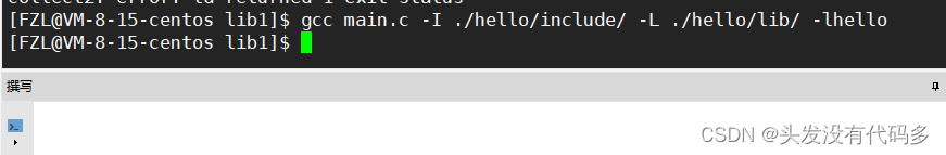 输入gcc main.c -lhello ,注意这里要加l去掉库前缀和后缀,即l后直接加库名字