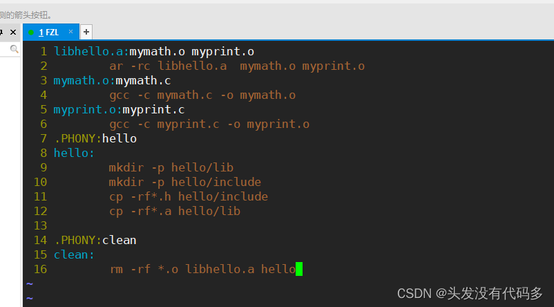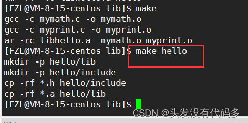 库通常是有头文件和对应的库文件,因此我们创建一个目录(目录名就叫hello),该目录下有俩个文件,一个存放库的头文件,另一个存放对应的库文件