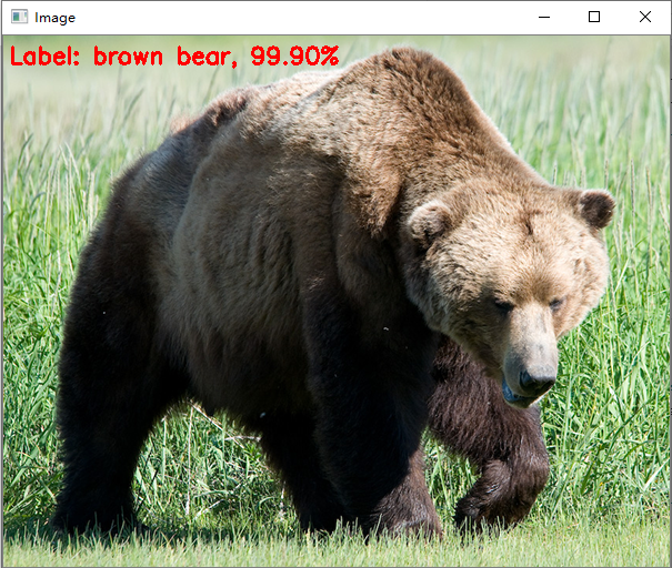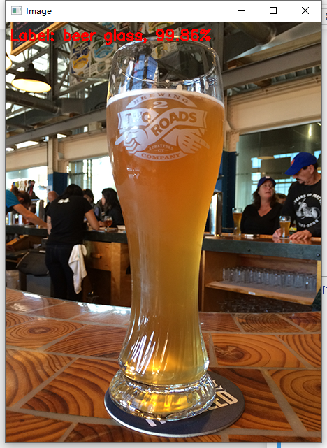for (i, p) in enumerate(imagePaths[1:]):image = cv2.imread(p)idx = np.argsort(preds[i])[::-1][0]text = "Label: {}, {:.2f}%".format(classes[idx],preds[i][idx] * 100)cv2.putText(image, text, (5, 25), cv2.FONT_HERSHEY_SIMPLEX, 0.7, (0, 0, 255), 2)cv_show("Image", image)Second Blob: (4, 3, 224, 224)