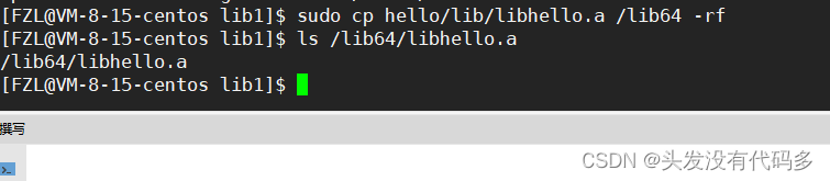 库通常是有头文件和对应的库文件,因此我们创建一个目录(目录名就叫hello),该目录下有俩个文件,一个存放库的头文件,另一个存放对应的库文件