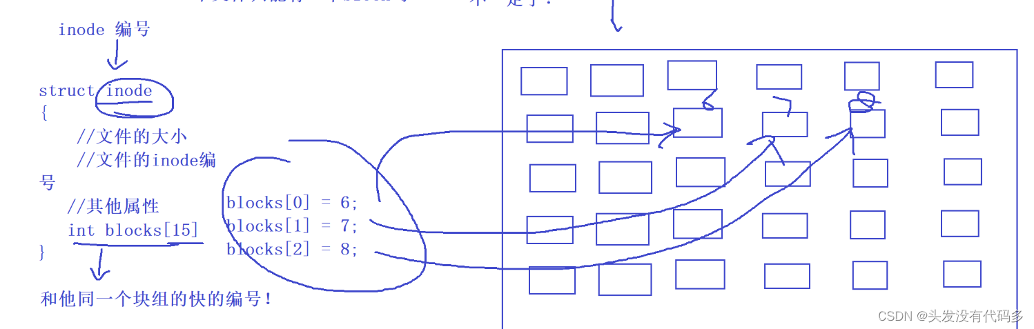 哪些block属于同一个文件?找到文件,只要找到该文件对应的inode编号,就能找到该文件的inode属性,可是文件的内容呢?