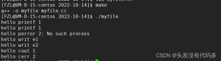 perror向2号文件描述符写入,perror会根据错误码输出错误原因。