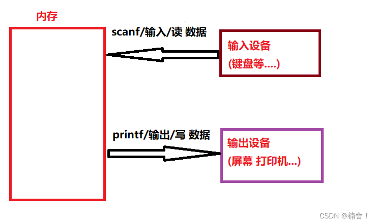 在进行一系列输入输出操作的时候会产生一个数据流,C语言在一开始的时候,会主动准备三个流供我们使用,:stdin(标准输入流) stdout(标准输出流) stderr(标准错误流),那么我们可以这样理解读和写,读就是输入数据,写就是输出数据,我们知道我们常用的scanf函数就是一个典型的输入函数,也是读函数,就是从键盘上读入数据,而写就是输出数据,常用的printf函数,就是输出函数,也是写函数,就是将键盘上读到的数据写到屏幕上,从而可以显示到屏幕上,再详细说,就是scanf函数会从标准输入(stdin)(输入设备:键盘等...)中读数据,将数据格式化的读到内存中,printf函数会将读入到内存中的数据,格式化的写到标准输出(sidout)(输出设备:屏幕 ,打印机 等....)上!而输入输出设备我们可以认为是键盘和屏幕!