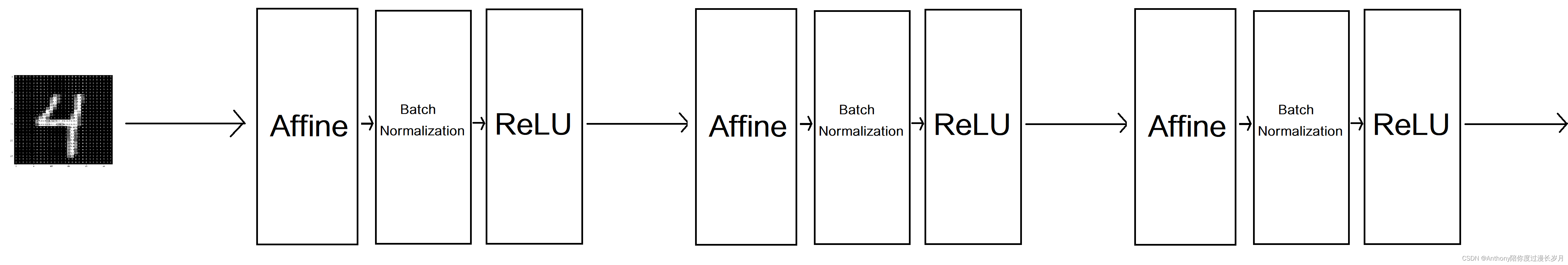 他的作用是调整各层激活函数进行正规化的层,即Bacth Normalization 层,所以将他插入在Affine层与ReLU层之间;