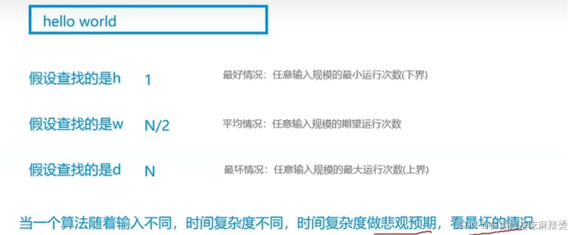 最坏情况:任意输入规模的最大运行次数(上界)