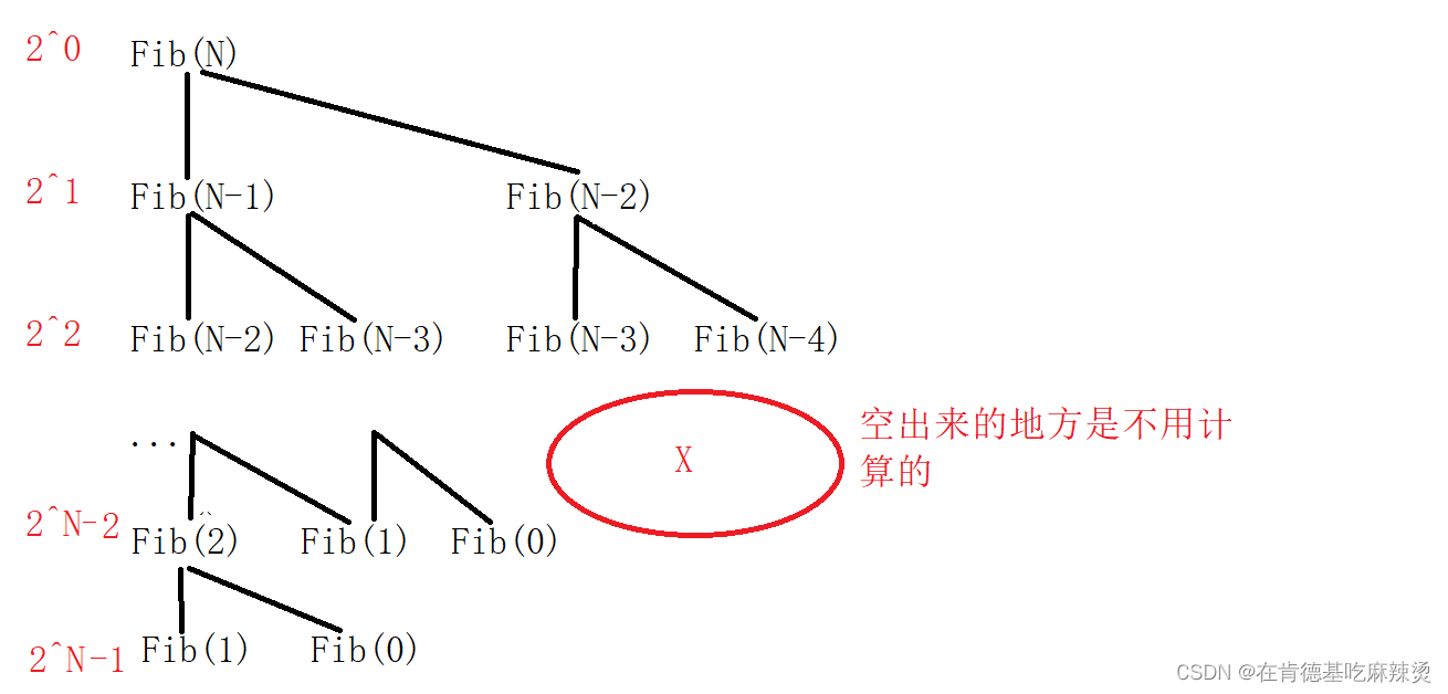 计算次数是 2^0* 2^1* 2^2* ...* 2^N-2* 2^N-1 - X,这是一个等比数列,F(N) =2^N -1 -X ,