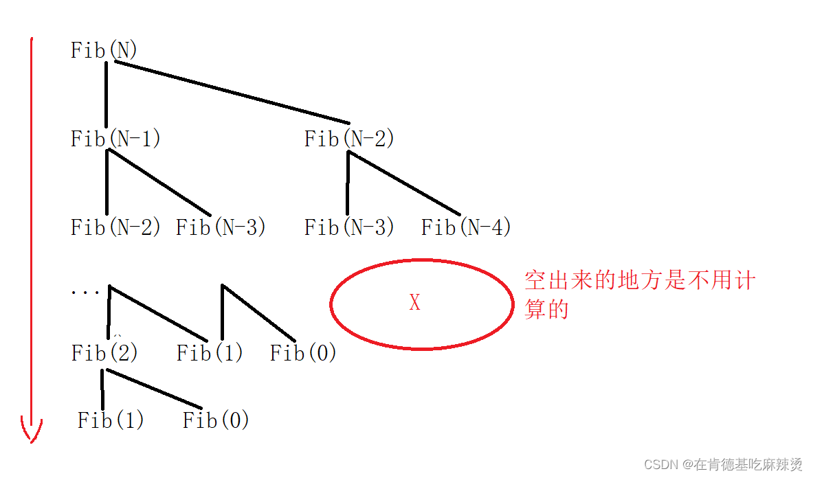 对于变量的创建和销毁来说,先创建Fib(N),再有Fib(N-1),再有Fib(N-2),一直往下走,最后创建Fib(2),Fib(1)。随后销毁之前创建的N个变量,再去创建Fib(N-1),到Fib(N-3),一直往下走,之后每一次创建的变量均小于第一次创建的N个变量个数,所以空间复杂度是O(N).