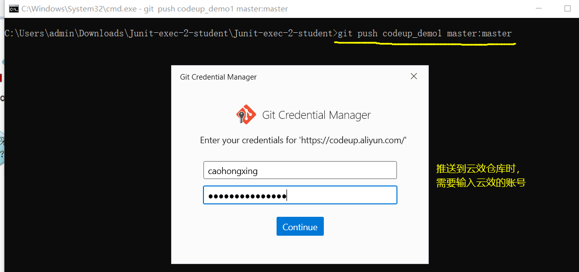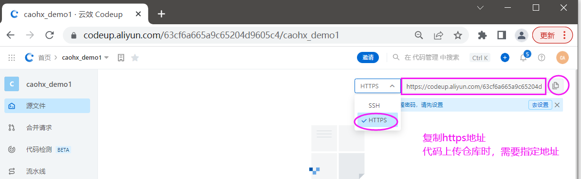 git remote add codeup_demo1 https://codeup.aliyun.com/63cf6a665a9c65204d9605c4/caohx_demo1.git