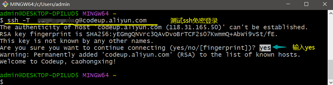 ssh -T your_account@codeup.aliyun.com