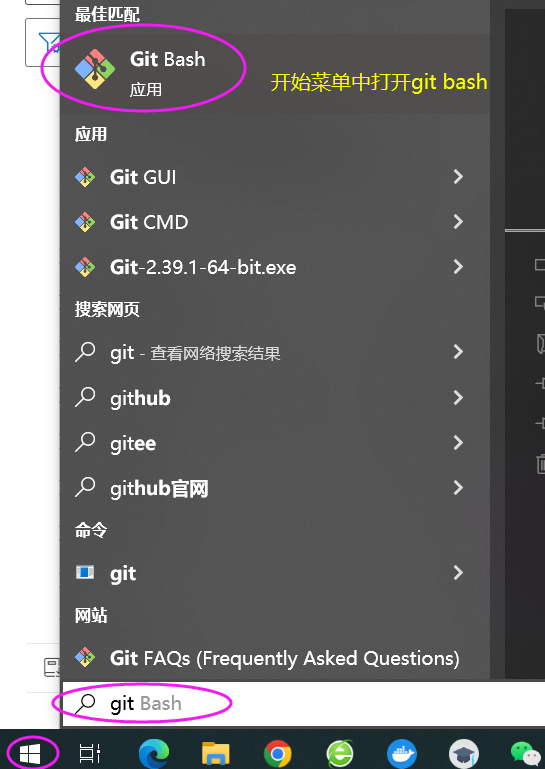 开始菜单中打开 Git Bash,