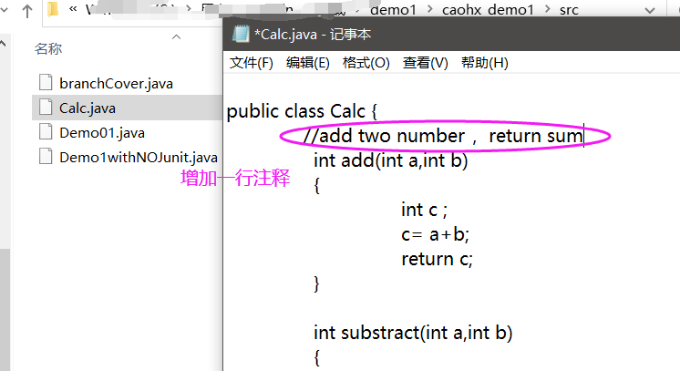 git commit -m 'moidfy calc.JAVA :add comment“ 提交到本地仓库