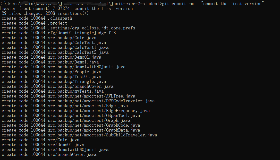git commit -m "commit the first version"