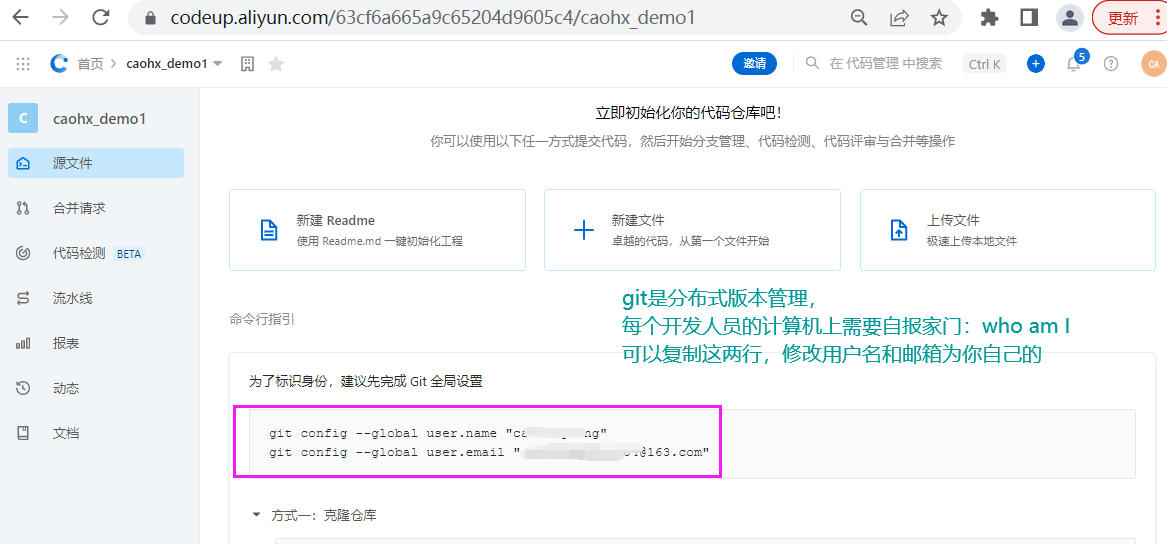 假设你本级上有代码,你如何提交到云效仓库中呢?