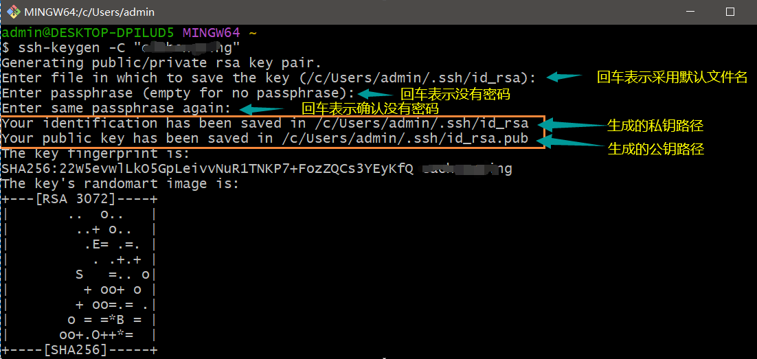 下面的两句命令后面会用到,可以提前复制好,将用户名和邮箱改成你自己的